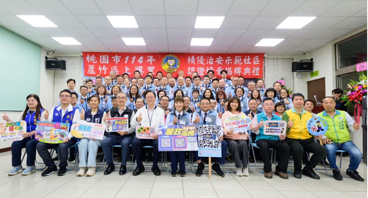 警察局表示,市府每年辦理「桃園市績優治安示範社區認證標章」評核,內容涵蓋警政、社政及消防三大面向,定期檢視社區安全成效。114年獲選社區除頒發認證標章外,並核發工作經費新臺幣6萬元,本次由蘆竹區上興里獲此殊榮,肯定其在治安維護上的卓越表現。